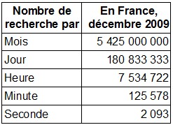 ComScore nous révèle dans une étude sur le marché de la recherche que les Français ont réalisé 5 425 000 000 recherches sur tableau_ggInternet au cours du mois de décembre 2009.