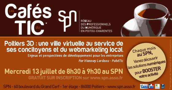 Vianney Lardeau, spécialiste en webmarketing local et dirigeant de PubéTic, présentera Poitiers 3D, la ville virtuelle au service de ses citoyens et du webmarketing local.